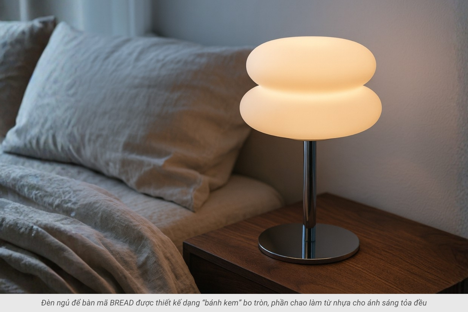 Đèn ngủ để bàn mã BREAD được thiết kế dạng “bánh kem” bo tròn, phần chao làm từ nhựa bền bỉ cho ánh sáng tỏa đều và mềm. Thân và đế đèn sử dụng kim loại mạ crom sáng bóng, tạo cảm giác chắc chắn, hiện đại và dễ vệ sinh khi dùng lâu dài. Đèn ngủ hỗ trợ ba chế độ ánh sáng khác nhau, cho phép người dùng linh hoạt điều chỉnh theo nhu cầu sử dụng vào buổi tối.