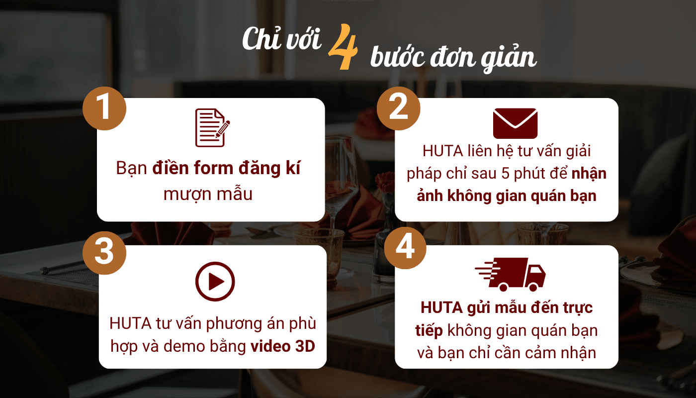 Chỉ với 4 bước đơn giản, HUTA sẽ giao đèn tận nơi chỉ trong 12h ở TP.HCM hoặc 2-3 ngày toàn quốc