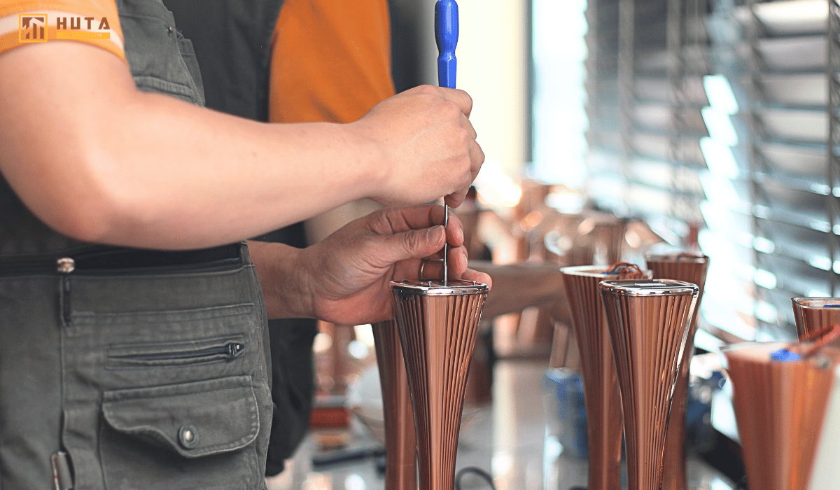 - Đèn bàn HUTA: Sử dụng pin đèn do chính tay đội ngũ HUTA tạo nên, kiểm định từng lô, đảm bảo độ bền cao, chiếu sáng ổn định lâu dài. Vỏ đèn được phủ sơn chống gỉ chuyên dụng, chịu được khí hậu ẩm ướt, lau chùi liên tục vẫn giữ màu mới, hạn chế tối đa trầy xước hay xuống mã. Đèn được cải tiến phần thân, tăng trọng lượng để cầm chắc tay, tránh đổ vỡ nhưng vẫn đảm bảo tính thẩm mỹ. Các điểm kết nối đều được kiểm tra kỹ càng trước khi bàn giao setup ánh sáng quán bar, nhà hàng cho khách.