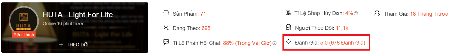 + Shop chính: HUTA LIGHT FOR LIFE