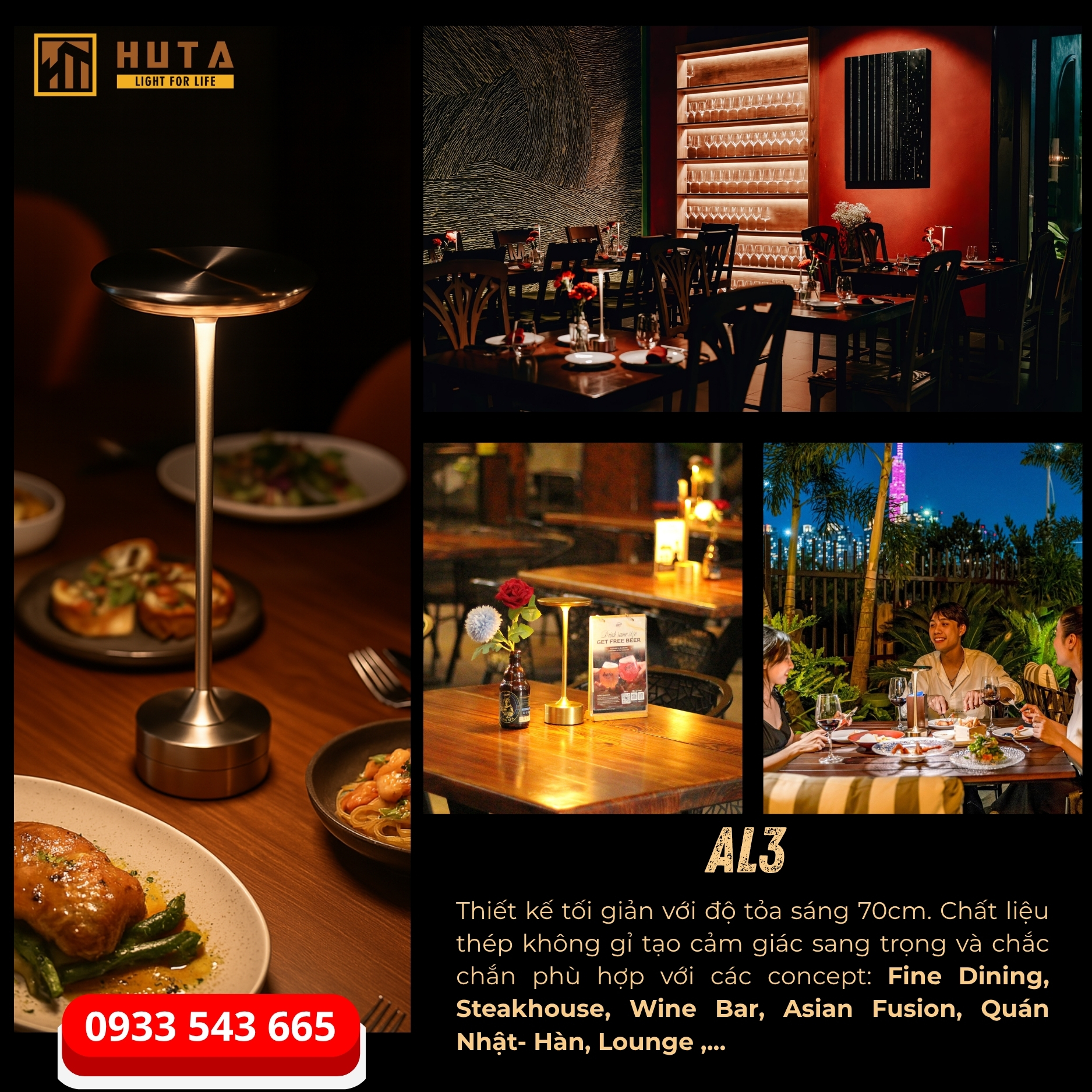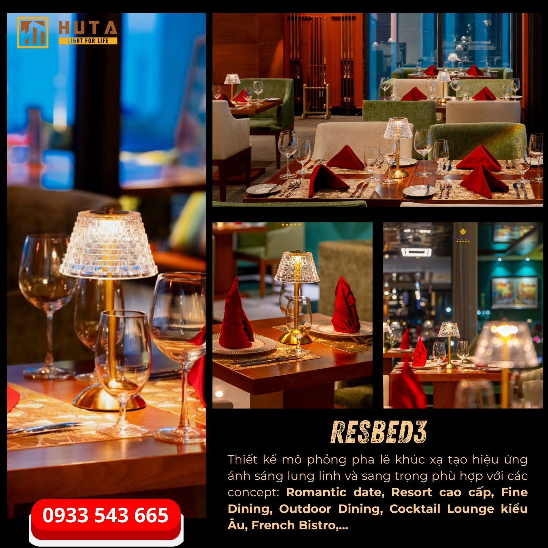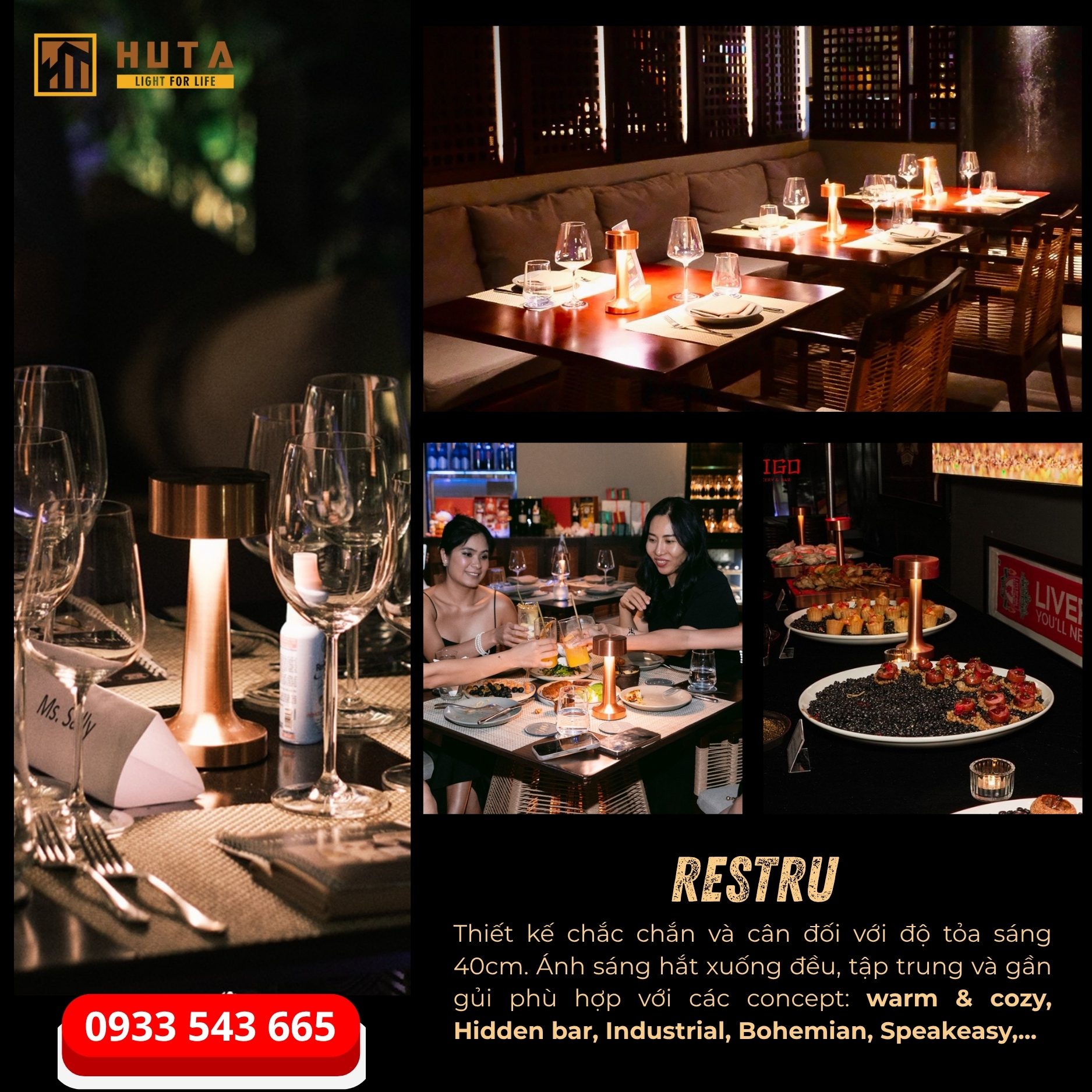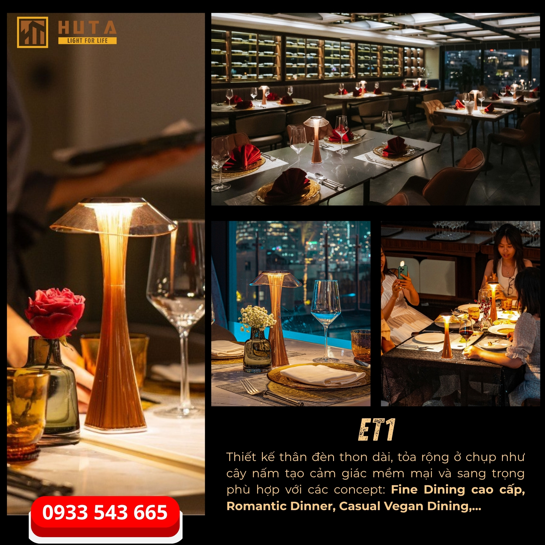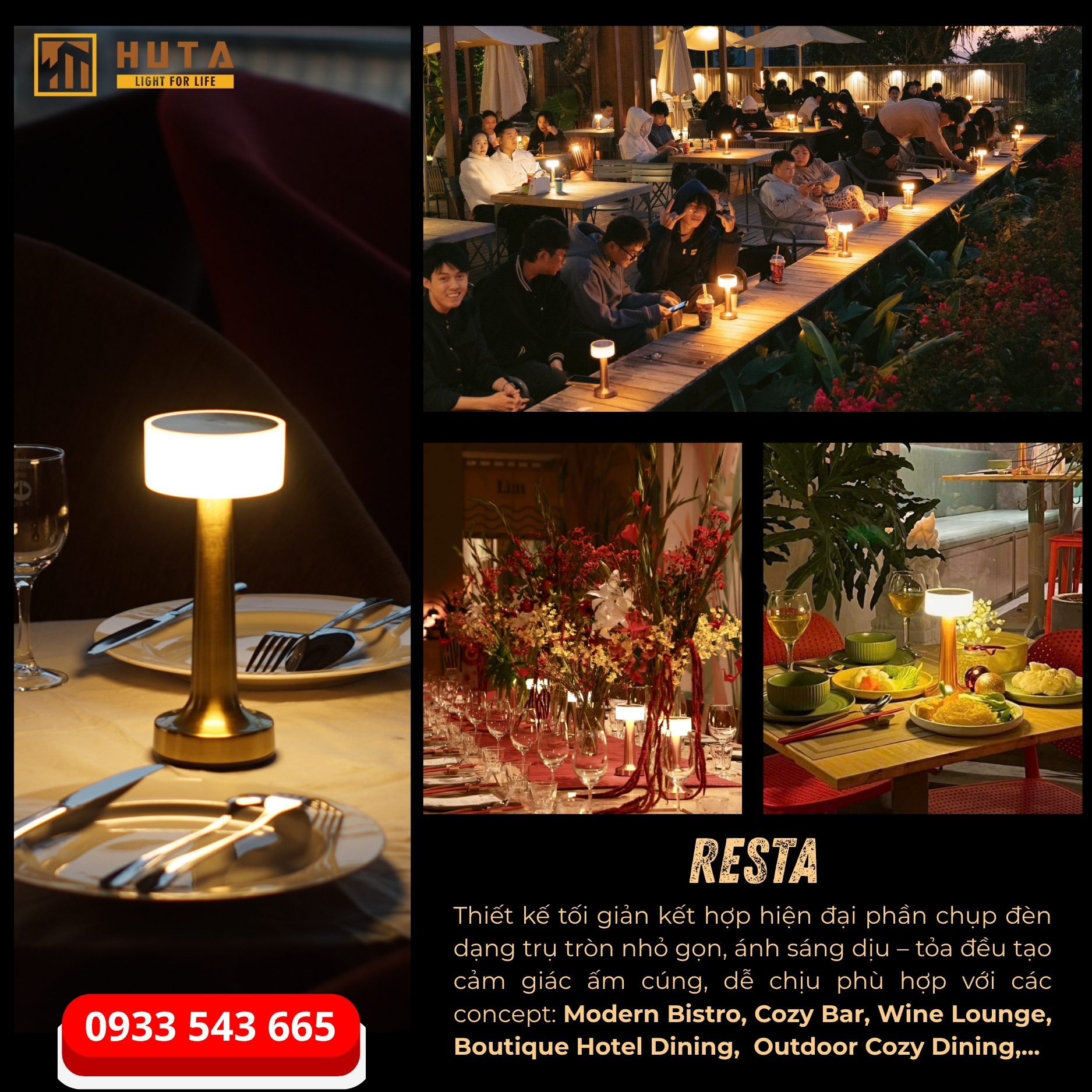 HUTA Light For Life – Thương hiệu tiên phong trong lĩnh vực đèn bàn sạc và đèn décor cao cấp tại Việt Nam, với hơn 5 năm đồng hành cùng hàng trăm nhà hàng, quán bar và khách sạn trên toàn quốc Chúng tôi hiểu rằng một nhà cung cấp đáng tin cậy không chỉ mang đến sản phẩm đẹp và tinh tế, mà còn phải đảm bảo chất lượng, tính ổn định và dịch vụ hậu mãi tận tâm.