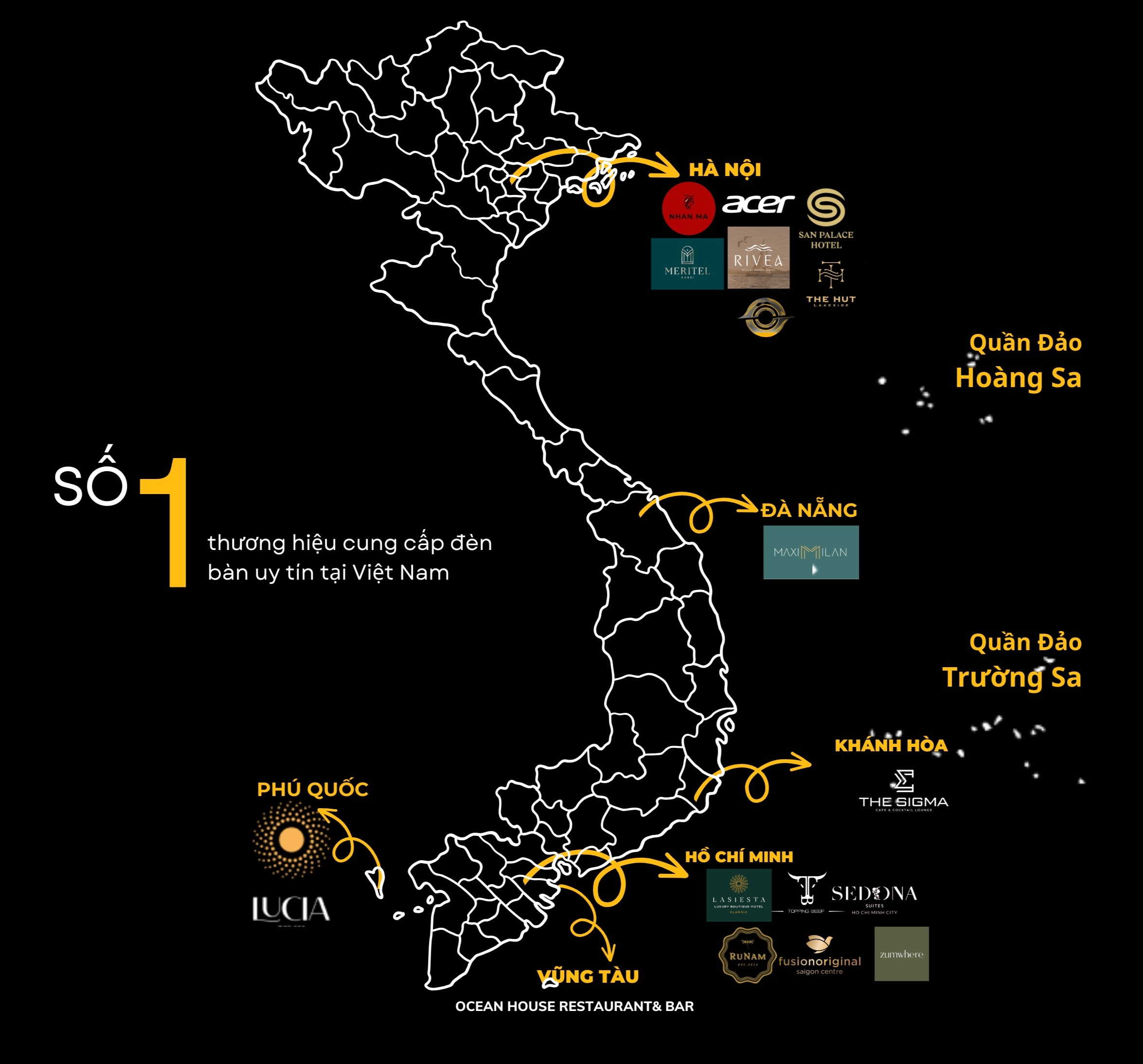 HUTA Light For Life vinh dự là đối tác cung cấp đèn để bàn trang trí của hơn 100 nhà hàng, quán bar cao cấp trên toàn quốc, mang đến giải pháp chiếu sáng đẳng cấp