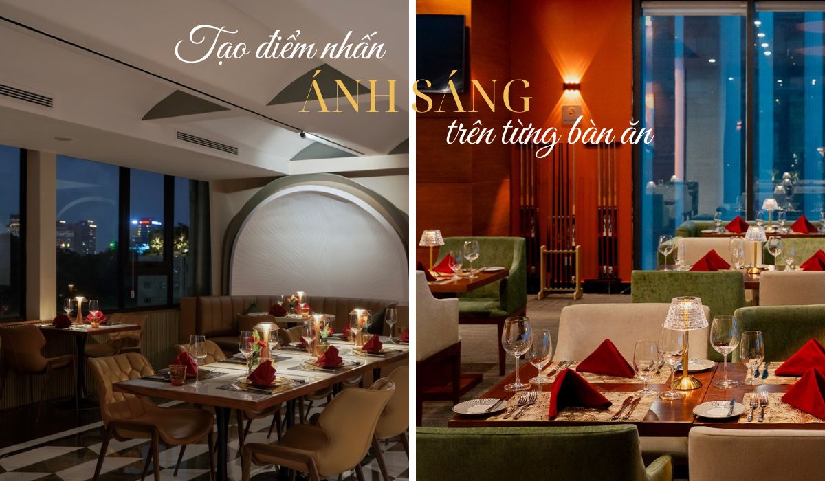 - Nhà hàng – quán bar: Tạo điểm nhấn ánh sáng riêng tư trên từng bàn ăn