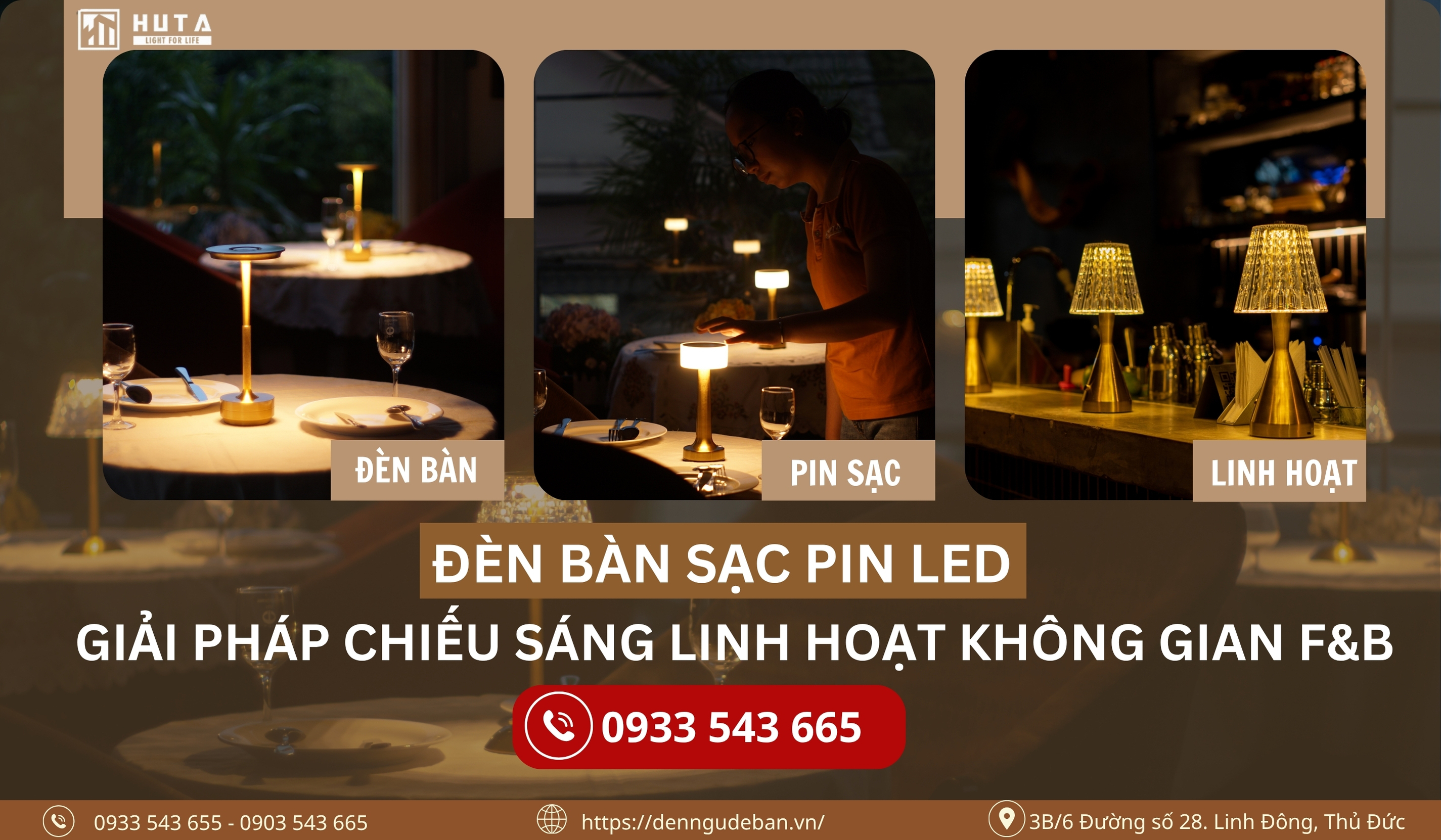 👉 Nhắn tin hoặc gọi ngay HUTA Light For Life để được tư vấn mẫu đèn bàn sạc pin LED phù hợp với quán hoặc dự án của bạn.