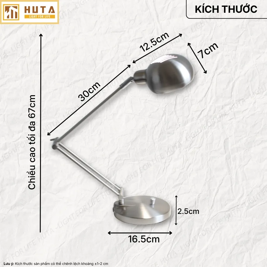 Đèn bàn học HUTA Light For Life LVK3 tập trung vào hiệu suất chiếu sáng phục vụ học tập và làm việc trong thời gian dài. Sản phẩm chú trọng độ sáng ổn định, giảm mỏi mắt và thiết kế gọn gàng, phù hợp đặt trên bàn học sinh, sinh viên và dân văn phòng.