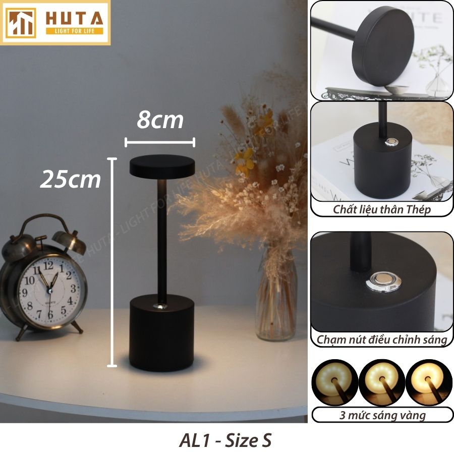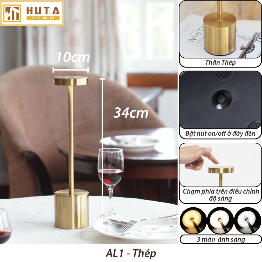 1. Đèn bàn led quầy bar, quán bar, bàn ăn nhà hàng, quán cà phê, cảm ứng, pin sạc, tích điện, ánh sáng vàng điều chỉnh độ sáng mã AL1