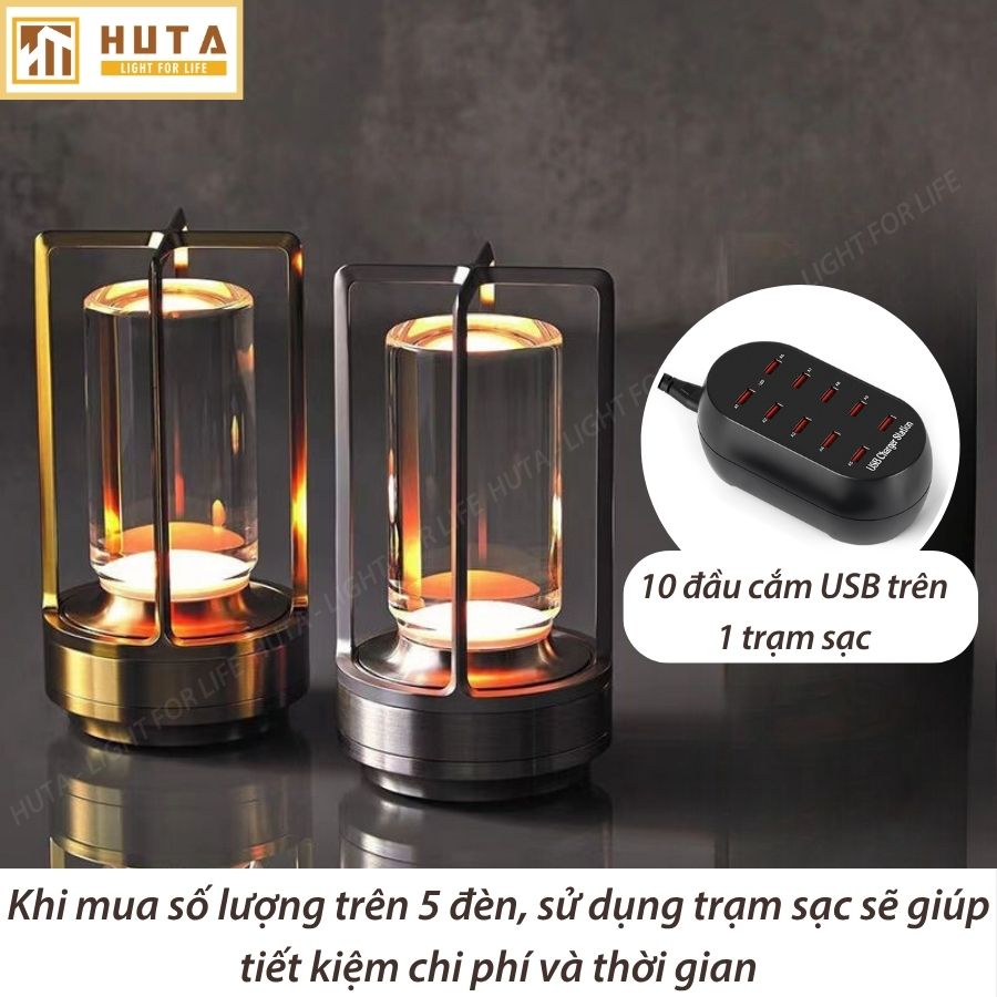 Để tiết kiệm chi phí và thời gian, khi mua trên 5 đèn bàn quầy bar sạc tích điện bạn hãy mua kèm trạm sạc. Trạm sạc gồm 10 cổng giúp bạn dễ dàng sạc cùng lúc 10 đèn, sạc nhanh không bị nóng và phù hợp với dòng điện của đèn nên tránh làm hỏng pin, tăng tuổi thọ sử dụng đèn