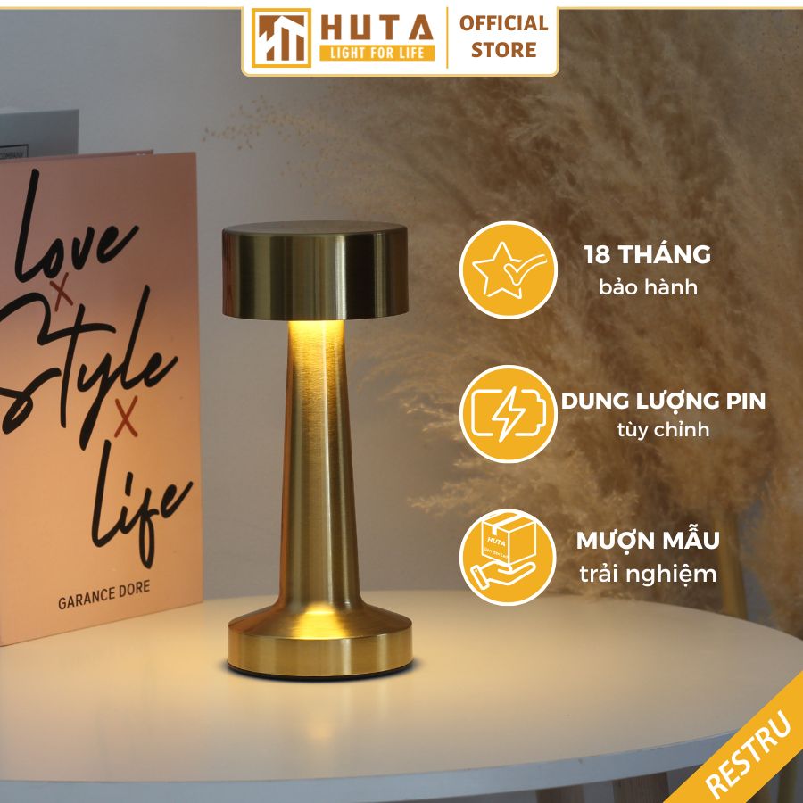 1. Đèn Bàn Led Quầy Bar, Quán Bar, Bàn Ăn Nhà Hàng, Quán Cà Phê, Cảm Ứng, Pin Sạc, Tích Điện, Ánh Sáng Vàng Điều Chỉnh Độ Sáng Mã RESTRU