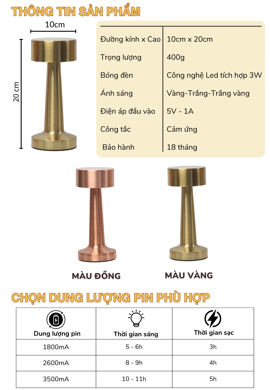 - 1. Đèn Bàn Led Quầy Bar, Quán Bar, Bàn Ăn Nhà Hàng, Quán Cà Phê, Cảm Ứng, Pin Sạc, Tích Điện, Ánh Sáng Vàng Điều Chỉnh Độ Sáng Mã RESTRU