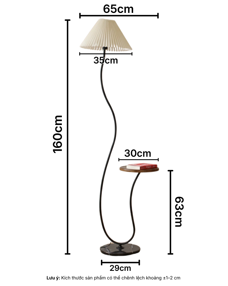Dưới đây là thông số kỹ thuật chi tiết giúp bạn dễ dàng lựa chọn và bố trí chiếc đèn đứng phù hợp với không gian: