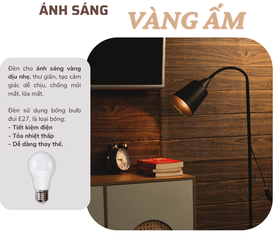 Phòng ngủ: bố trí cạnh giường hoặc góc tường, vừa đủ sáng để đọc sách, vừa mang lại không khí thư giãn và dễ chịu trước khi ngủ.