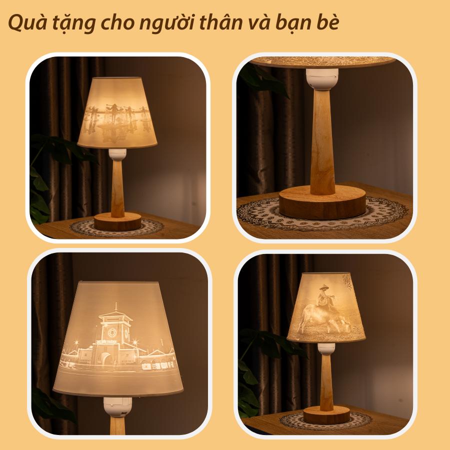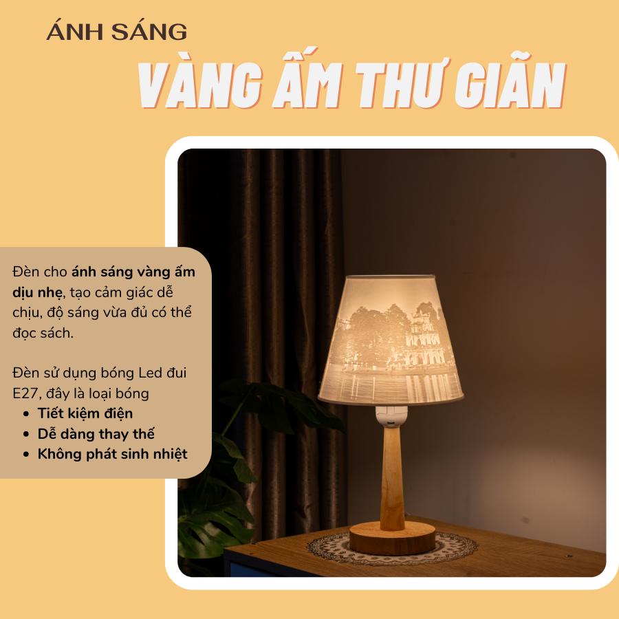 - Đèn ngủ để bàn thân gỗ có thiết kế thanh lịch, có thể vừa làm đèn ngủ vừa trang trí canh phòng, mang lại sự nhẹ nhàng cho không gian