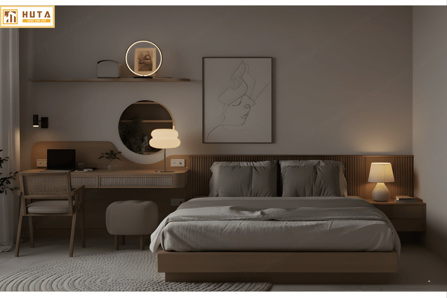 Đèn ngủ để bàn là lựa chọn phổ biến trong phòng ngủ hiện đại. Ánh sáng dịu nhẹ giúp giảm căng thẳng và hỗ trợ giấc ngủ tốt hơn. Ngoài yếu tố chiếu sáng, HUTA tập trung vào thiết kế bền và chất liệu an toàn, đảm bảo phù hợp với nhiều phong cách nội thất.