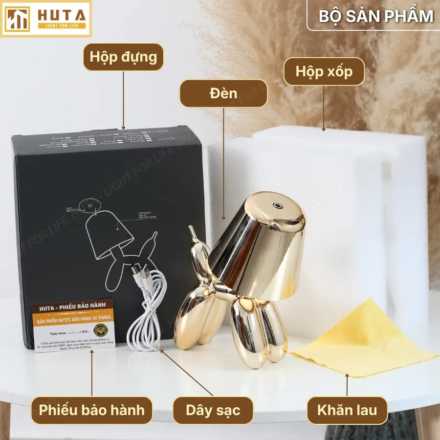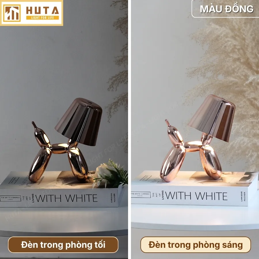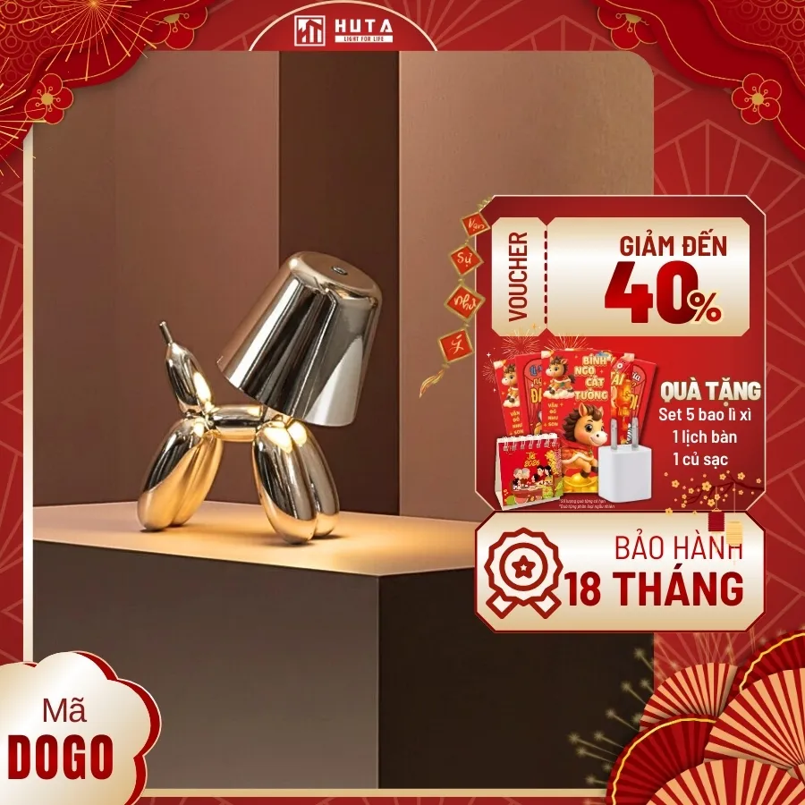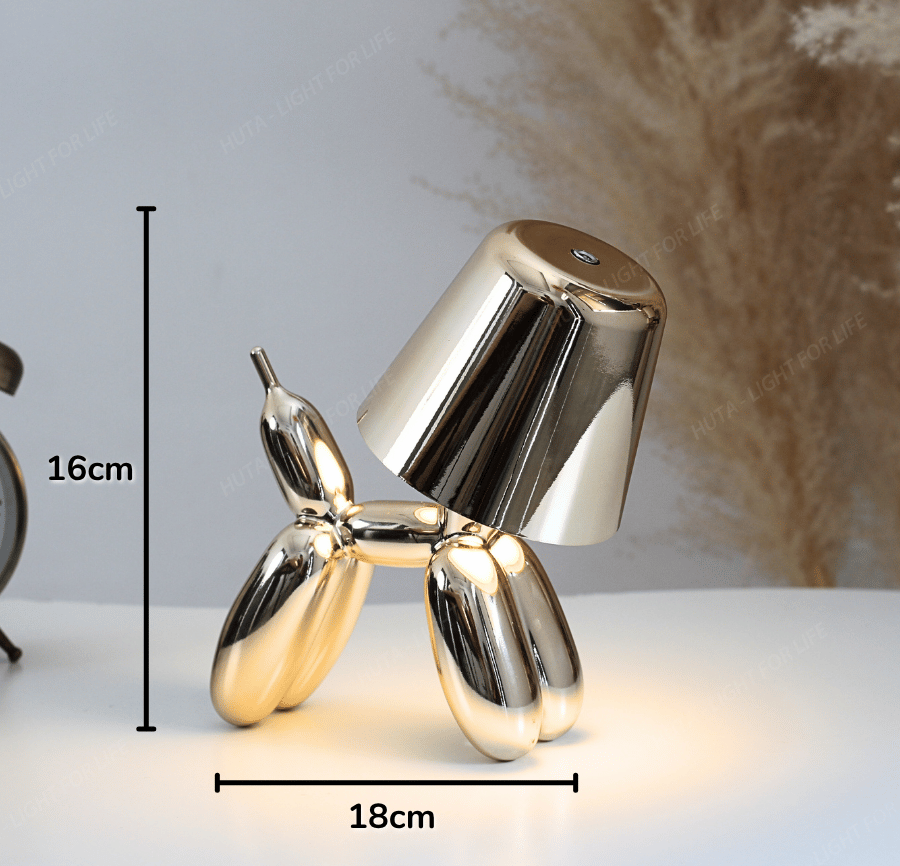 Đèn bàn trang trí HUTA Light For Life DOGO lấy cảm hứng từ chú chó bong bóng mang lại cảm giác vui tươi, hiện đại và tràn đầy năng lượng. Từng đường cong bóng bẩy tạo nên điểm nhấn nghệ thuật, khiến không gian trở nên sinh động và cao cấp hơn.