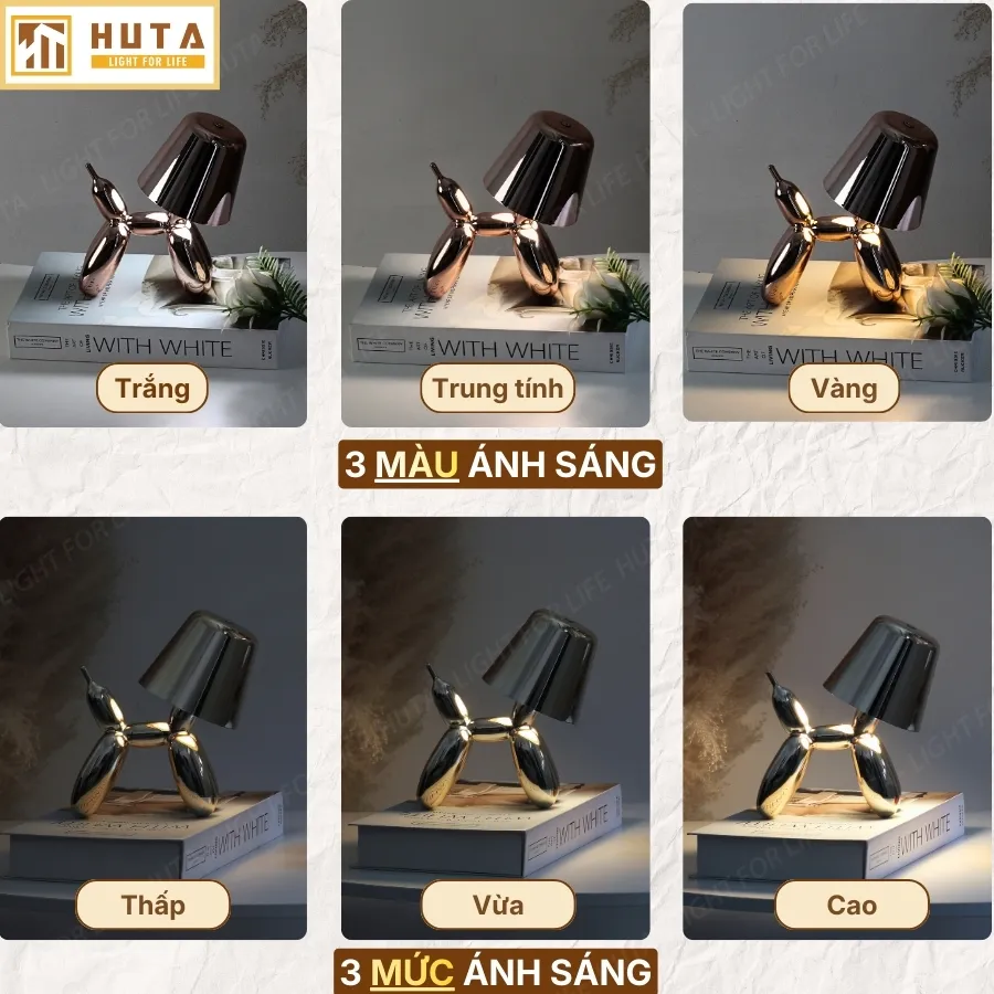 Đèn Bàn Trang Trí HUTA Light For Life DOGO Pin Sạc Tích Điện, Điều Chỉnh Độ Sáng, Decor Phòng