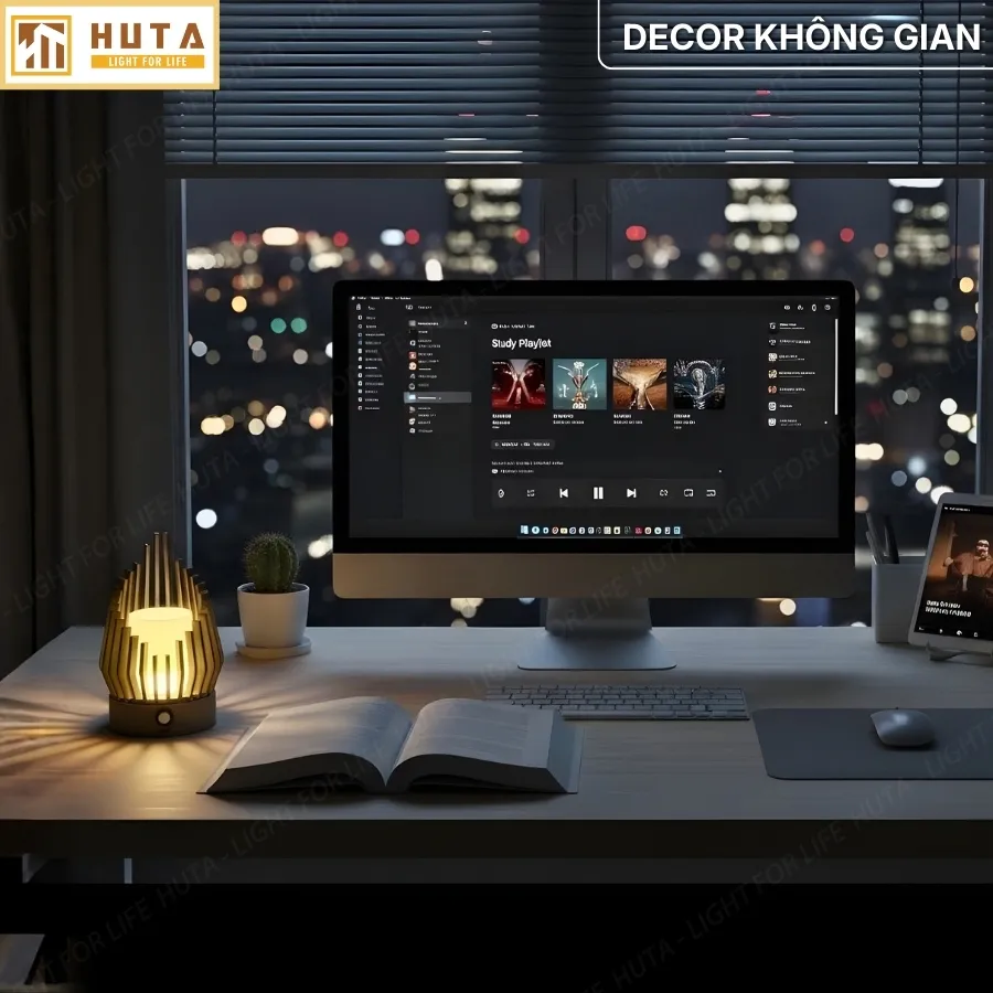 Dùng cho bàn làm việc, kệ sách hoặc góc decor: Ánh sáng tỏa đều, phản chiếu tự nhiên, vừa hỗ trợ làm việc hiệu quả vừa tạo điểm nhấn tinh tế cho không gian sống.