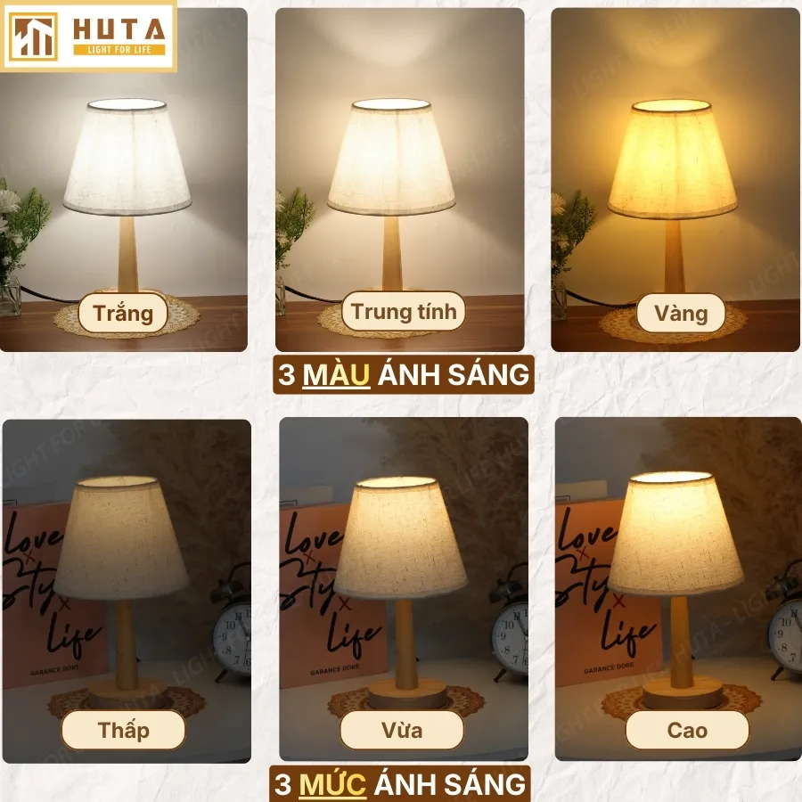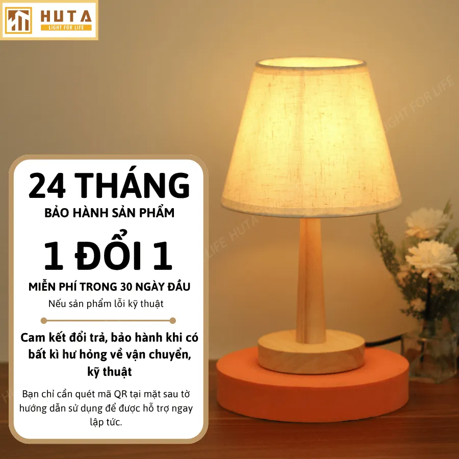 Đèn Ngủ Để Bàn Gỗ HUTA G2 Điều Chỉnh Độ Sáng, Ánh Sáng Vàng, Bảo Hành 24 Tháng