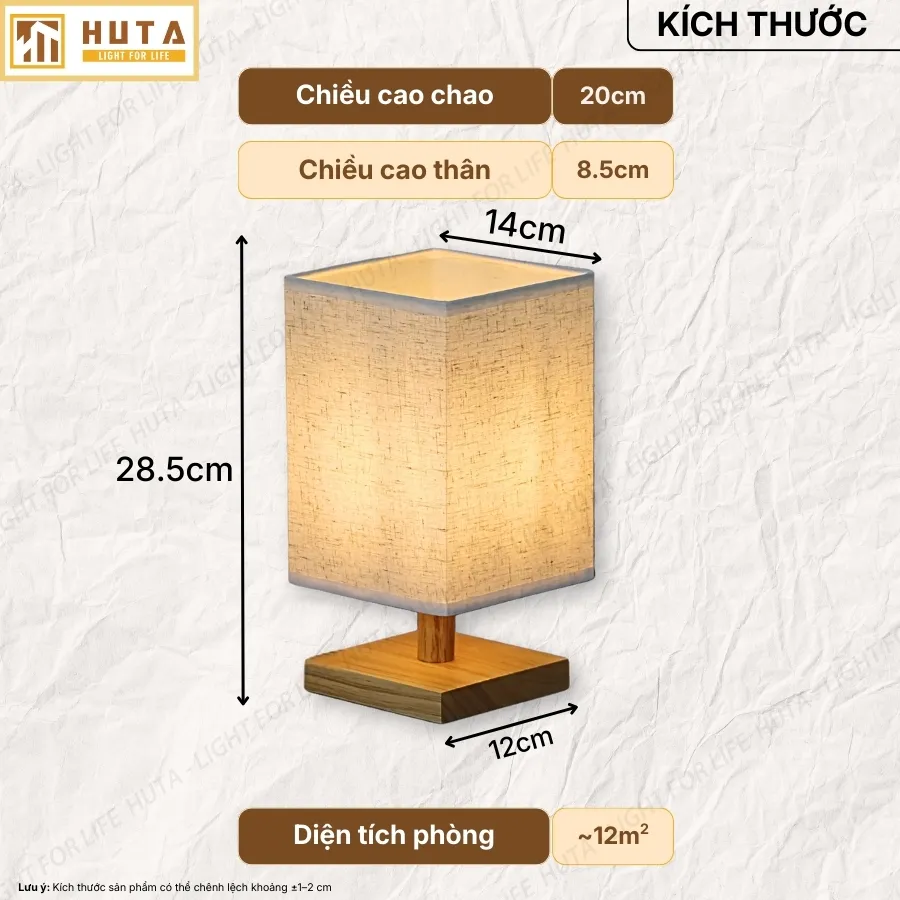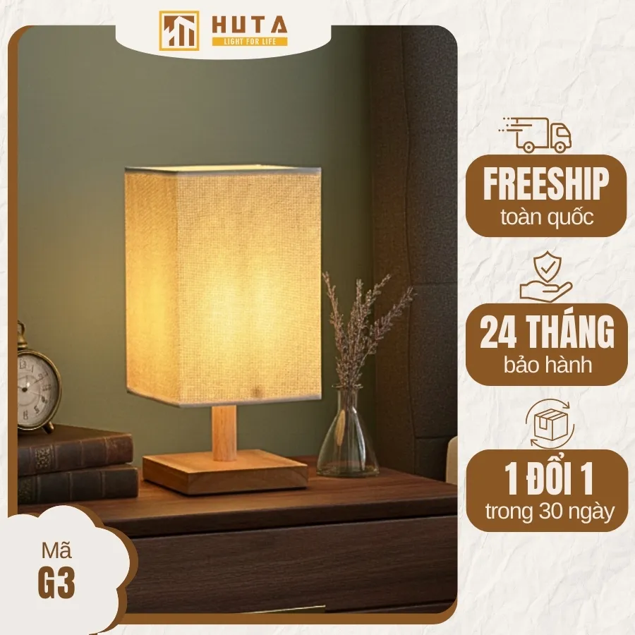 Đèn Ngủ Để Bàn Gỗ HUTA G3 Điều Chỉnh Độ Sáng, Đầu Cắm Điện 2 Chấu 220v, Ánh Sáng Vàng