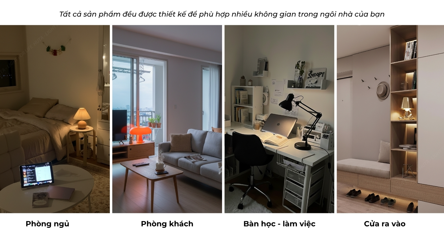 Tất cả sản phẩm đều được thiết kế để phù hợp nhiều không gian trong ngôi nhà của bạn mà không cần lắp đặt cầu kỳ. Với +100 mẫu đèn trong bộ sưu tập được HUTA chọn lọc từ các nhà cung cấp uy tín, đảm bảo tiêu chuẩn về ánh sáng, độ bền và thẩm mỹ.