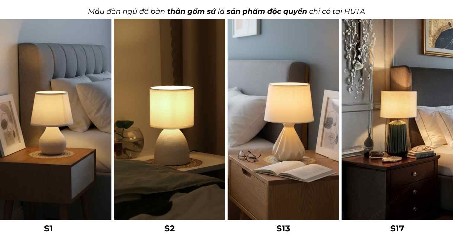Đèn Ngủ Để Bàn Sứ HUTA S8 - T8 Điều Chỉnh Độ Sáng, Ánh Sáng Vàng, Bảo Hành 24 Tháng