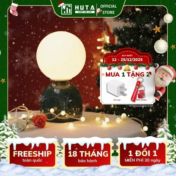 Đèn ngủ để bàn HUTA Light For Life mã MT2 gây ấn tượng với thiết kế quả cầu trăng độc đáo kết hợp cùng thân gốm sứ phủ men sang trọng, mang đến vẻ đẹp vừa hiện đại vừa tinh tế. Không chỉ là đèn chiếu sáng, đèn bàn trang trí MT2 còn là món decor nghệ thuật giúp không gian thêm ấm áp, thư giãn và đậm dấu ấn cá nhân.
