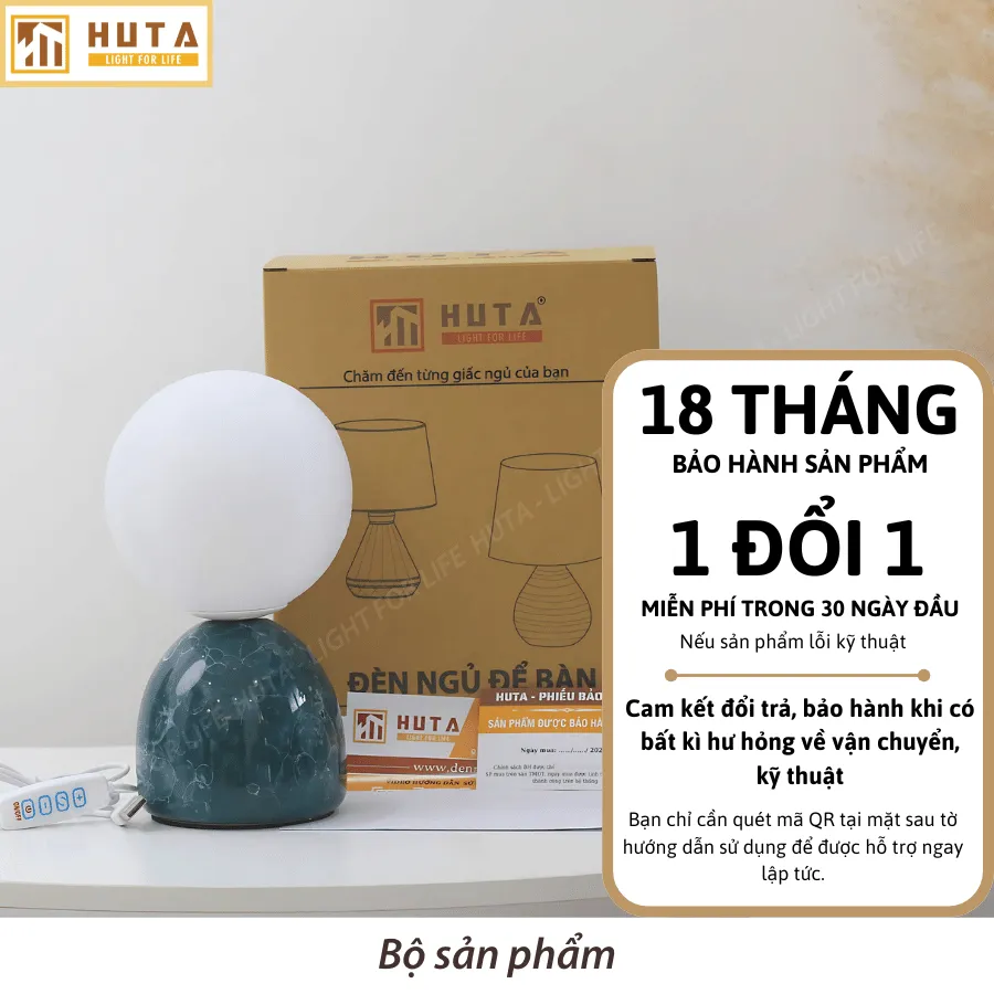 A: Khi giao đến tay khách hàng, đèn ngủ để bàn HUTA luôn được đóng gói và bọc cẩn thận với nhiều lớp chống sốc để đảm bảo an toàn. Khi giao đến nơi, quý khách có thể kiểm tra và nếu có hư hỏng do vận chuyển, HUTA sẽ đổi 1:1 miễn phí.