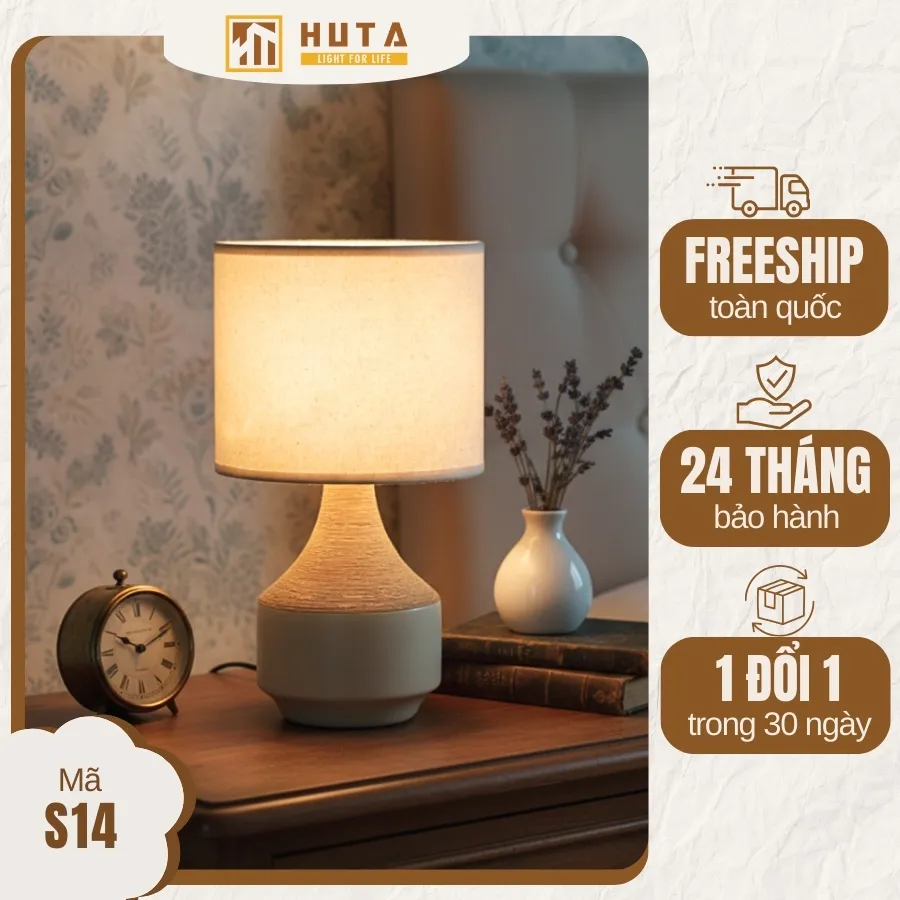 Đèn ngủ để bàn S14 với phần thân gốm sứ mang phong cách sang trọng kết hợp với ánh sáng vàng nhẹ dịu, tạo cảm giác thư giãn và tinh tế cho không gian của bạn.