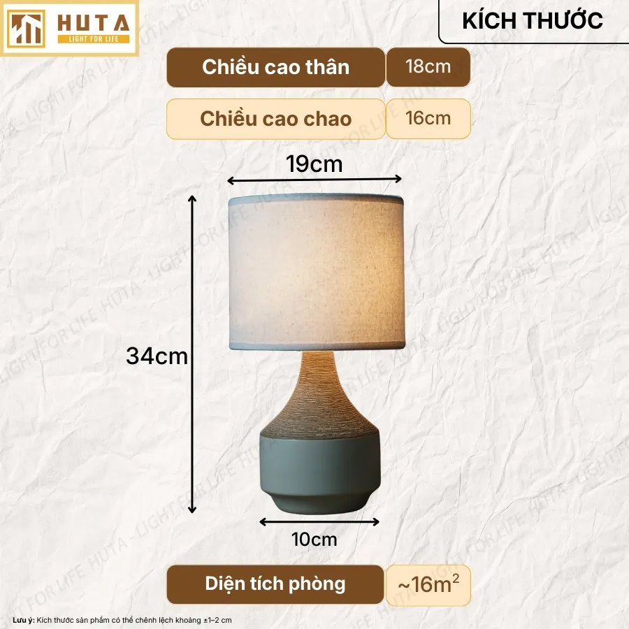 Thân đèn: bề mặt men sứ kết hợp vân màu gỗ3. Thông số kỹ thuật đèn ngủ để bàn S14