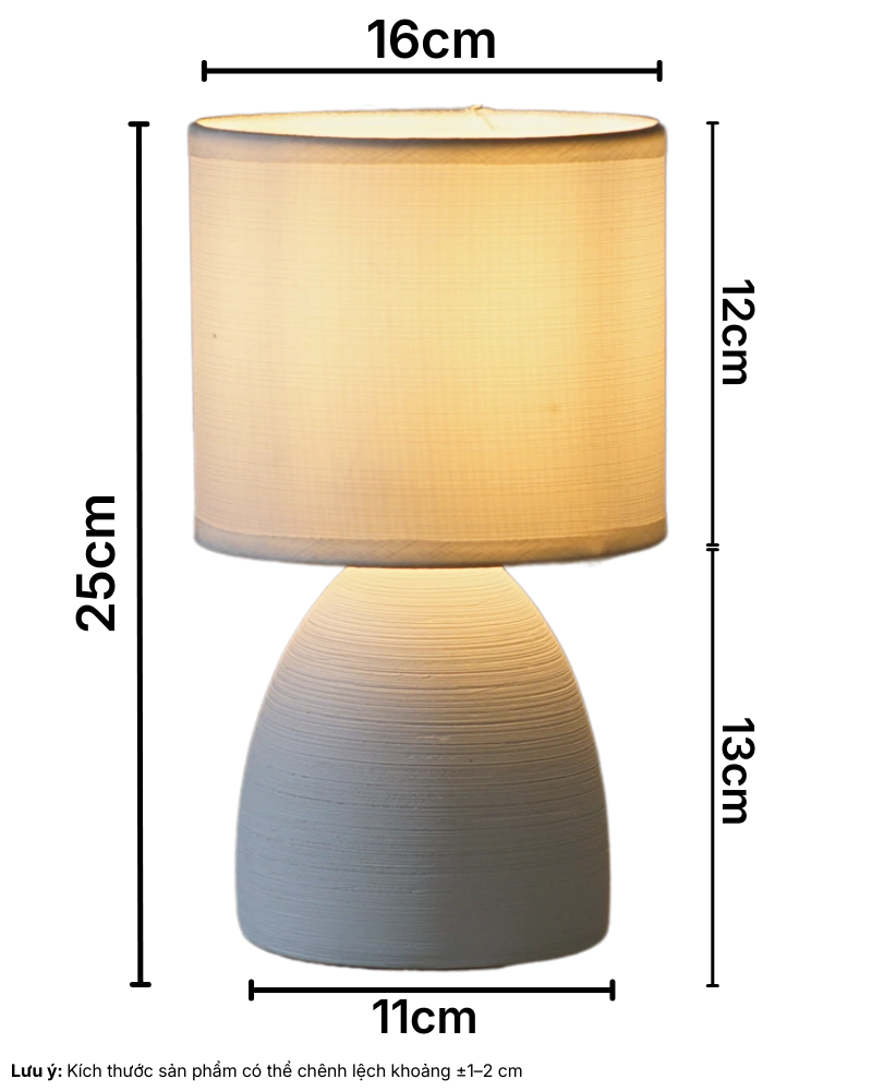 Thân đèn: tạo hình thủ công từ đất nung3. Thông số kỹ thuật đèn ngủ để bàn S2