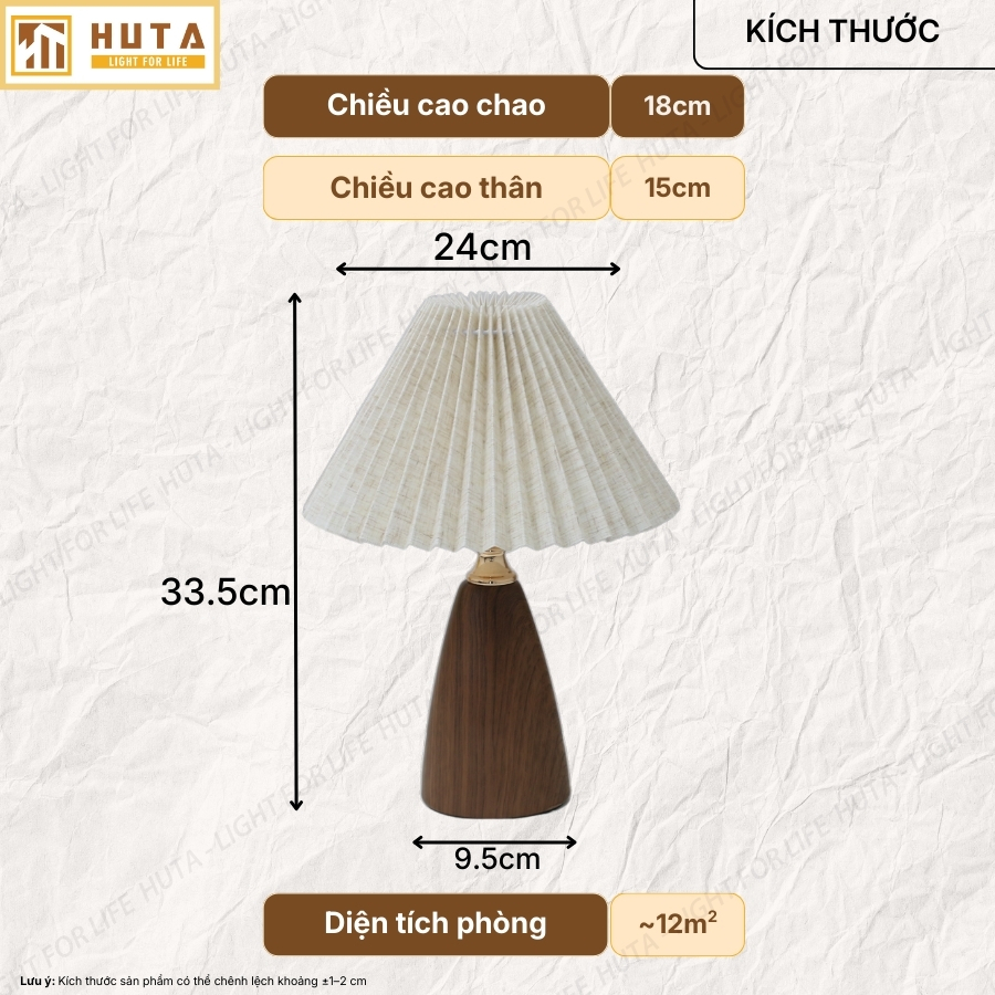 Đèn ngủ để bàn T10 được chế tác tỉ mỉ từ chất liệu cao cấp, kết hợp giữa kim loại và chao vải ép nhựa xếp ly, mang đến độ bền cao và vẻ ngoài tinh tế. Mỗi chi tiết đều được hoàn thiện cẩn thận để đảm bảo tính thẩm mỹ, độ an toàn và hiệu suất chiếu sáng ổn định khi sử dụng hằng ngày.