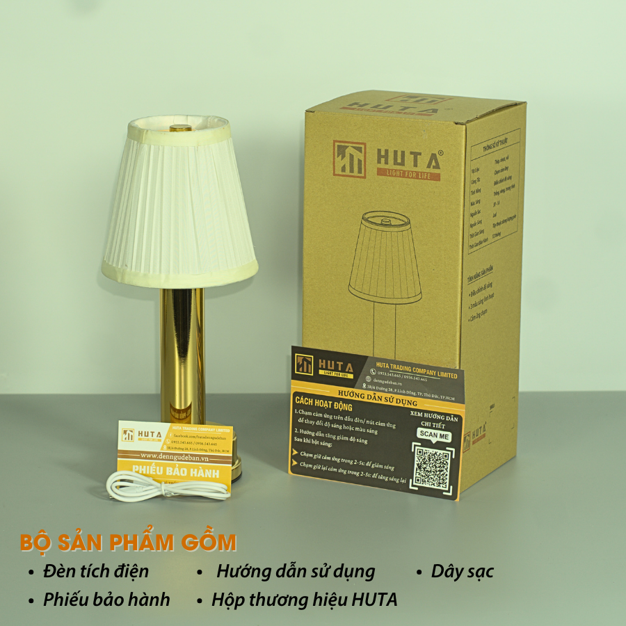 Khi mua đèn tại HUTA khi nhận hàng bạn sẽ nhận được trọn bộ sản phẩm bao gồm: Đèn tích điện, phiếu bảo hành, phiếu hướng dẫn sử dụng, hộp HUTA và dây sạc. Khi nhận về bạn chỉ cần bật đèn và sử dụng