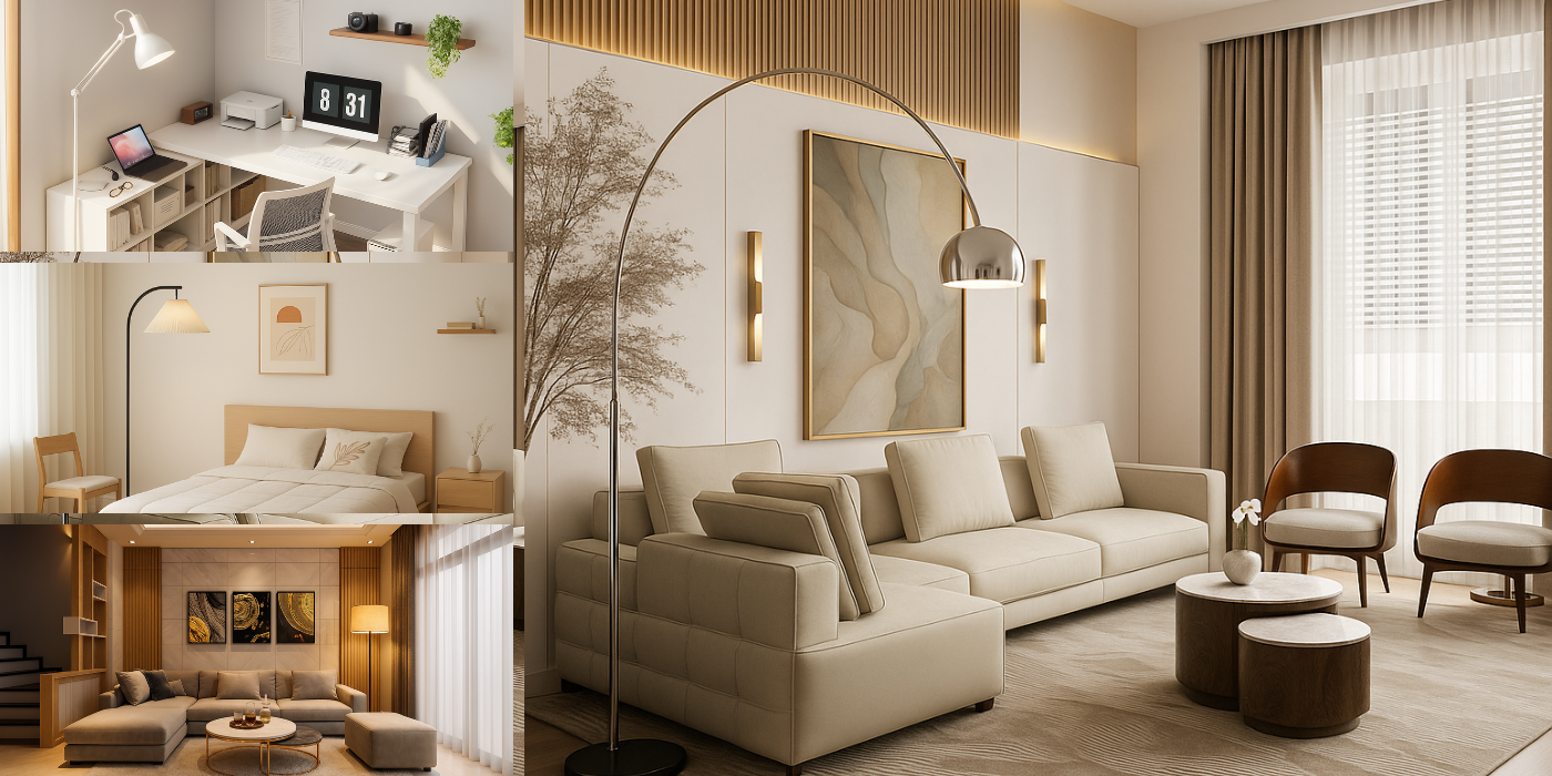 Với một chiếc đèn decor cây đứng hợp lý, bạn có thể biến góc đọc sách thành nơi nghỉ ngơi, góc bàn làm việc thành chốn sáng tạo, hay góc nhỏ cạnh giường trở nên ấm áp hơn chỉ với vài thao tác đơn giản mà không phải lo về kỹ thuật.