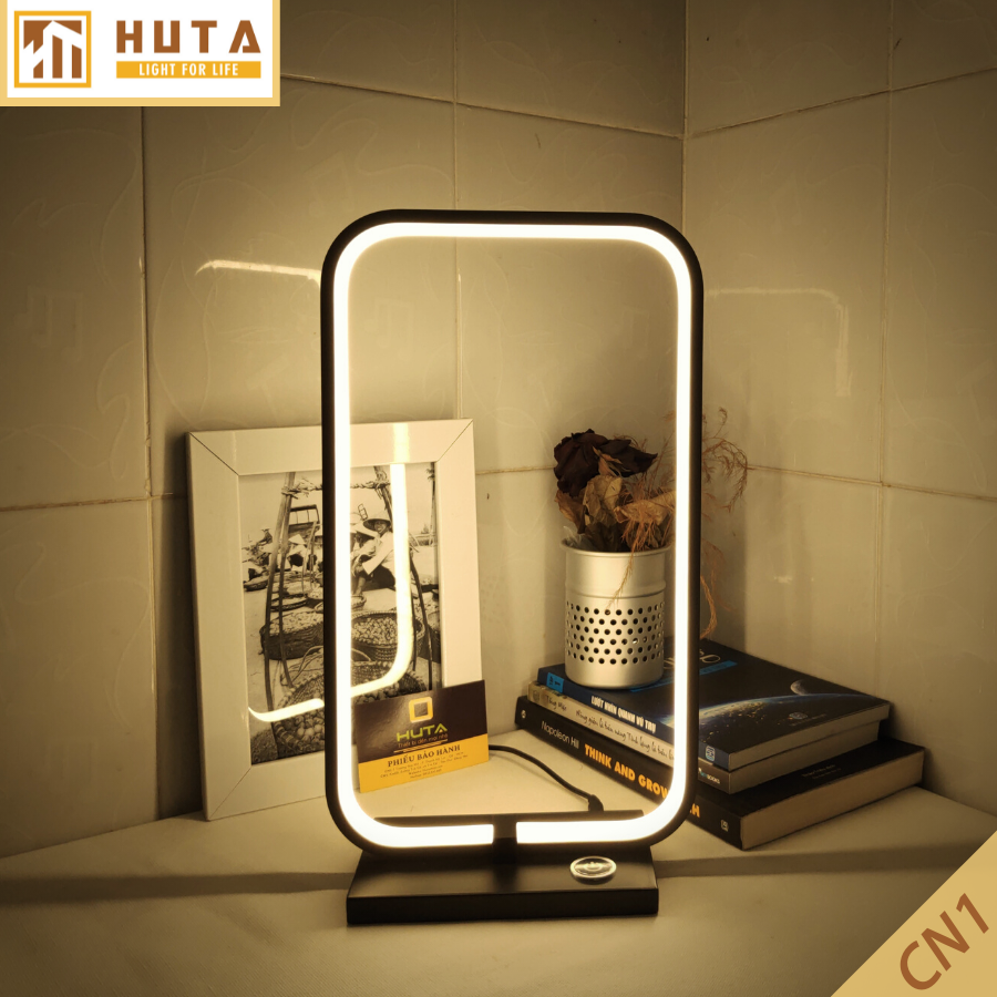 Đèn để bàn - HUTA Mã CN1 với chất liệu khung nhôm sơn tĩnh điện chắc chắn cùng ánh sáng vàng dịu mắt là lựa chọn thích hợp dùng để bàn làm việc, làm đèn ngủ, để phòng khách.