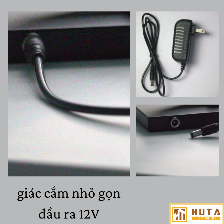 Đèn sử dụng giác cắm là nguồn Adaptor 12V, nhỏ gọn, với củ cắm rất thuận tiện.