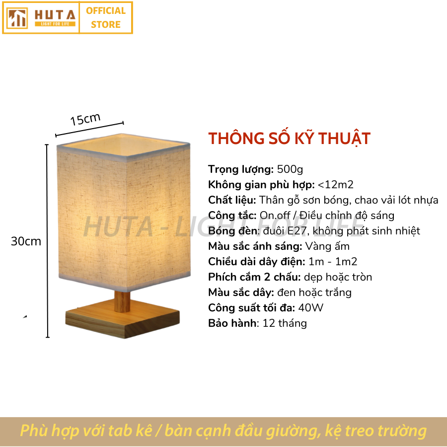 Với kích thước chiều rộng 15cm và chiều dài 30cm, Đèn ngủ để bàn- HUTA Mã G3 phù hợp với hầu hết các vị trí, như là bàn đọc sách, tab kê đầu giường, làm đèn decor chụp hình sản phẩm, ....