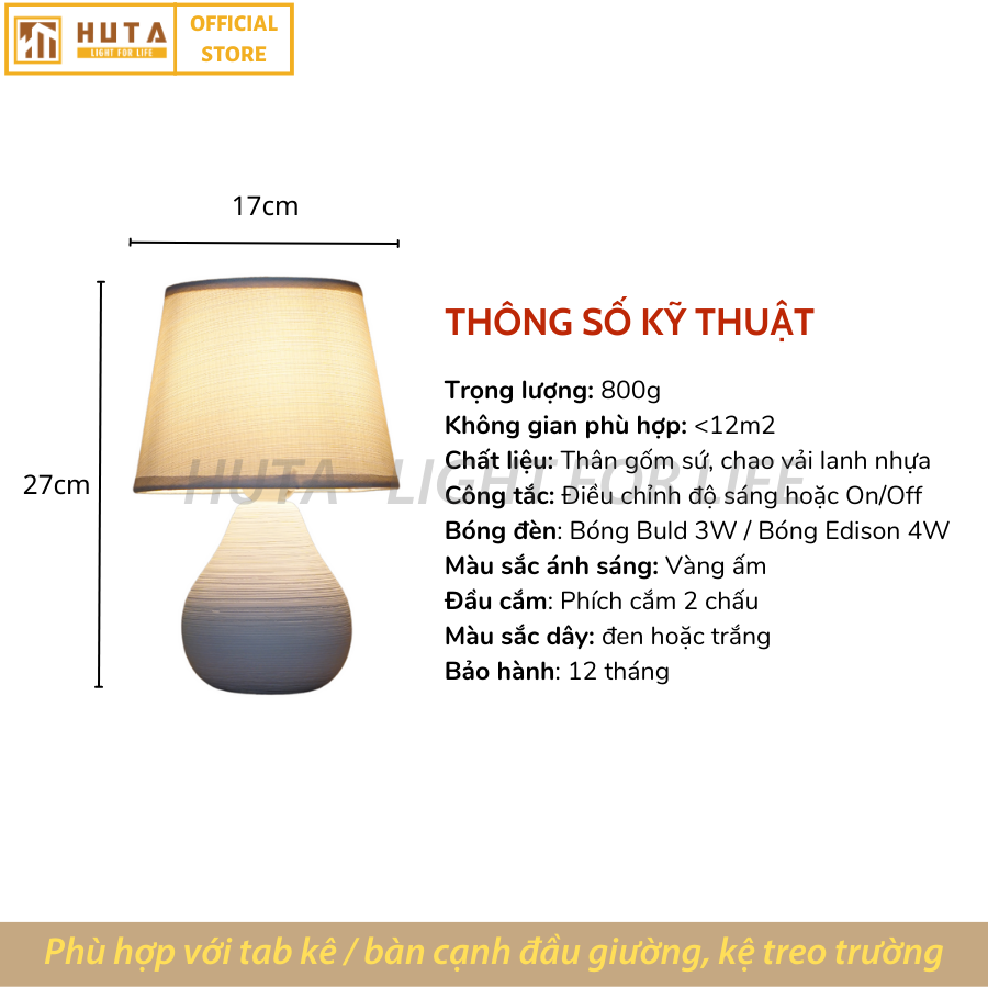 Với kích thước chiều rộng 17 cm và chiều dài 27 cm, Đèn ngủ để bàn - HUTA Mã S1 phù hợp với hầu hết các vị trí, như là bàn đọc sách, tab kê đầu giường, làm đèn decor chụp hình sản phẩm, ....